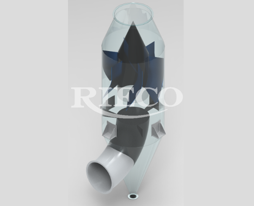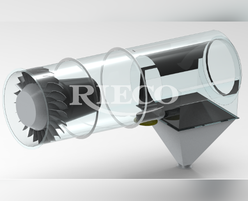 The conversion of laminar flow into turbulent flow assists in separating ash or dust from the rest of the flow, based on density differences. As the flow spins, high-density particles like ash are separated from the low-density flow and collected in a hopper. A rotary airlock valve beneath the hopper then enables easy discharge of the collected dust or ash.